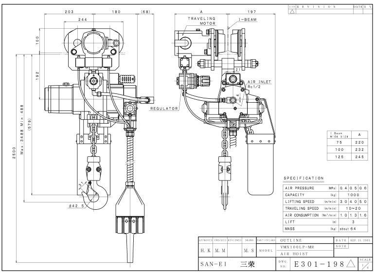 Sanei三荣气动葫芦 VLX100LP-MR
