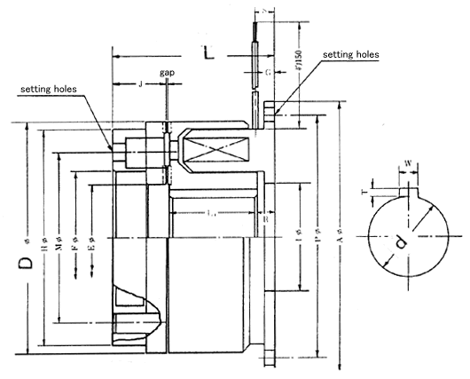 ACTION: STC type synchiro tooth clutch engages driven shaft and subordinated shaft at definite position engaging. (A clutch for definite position engaging ) STC has a special tooth to engage at one definite position on the circumference. STC is used for position setting or synchronized operation of machne tool, printing machine and industrial machines. |