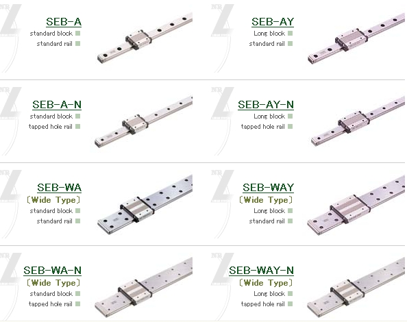 NB导轨SEB型型号: SEB-A,SEB-AY, SEB-A-N,SEB-AY-N, SEB-WA,SEB-WAY, SEB-WA-N,SEB-WAY-N